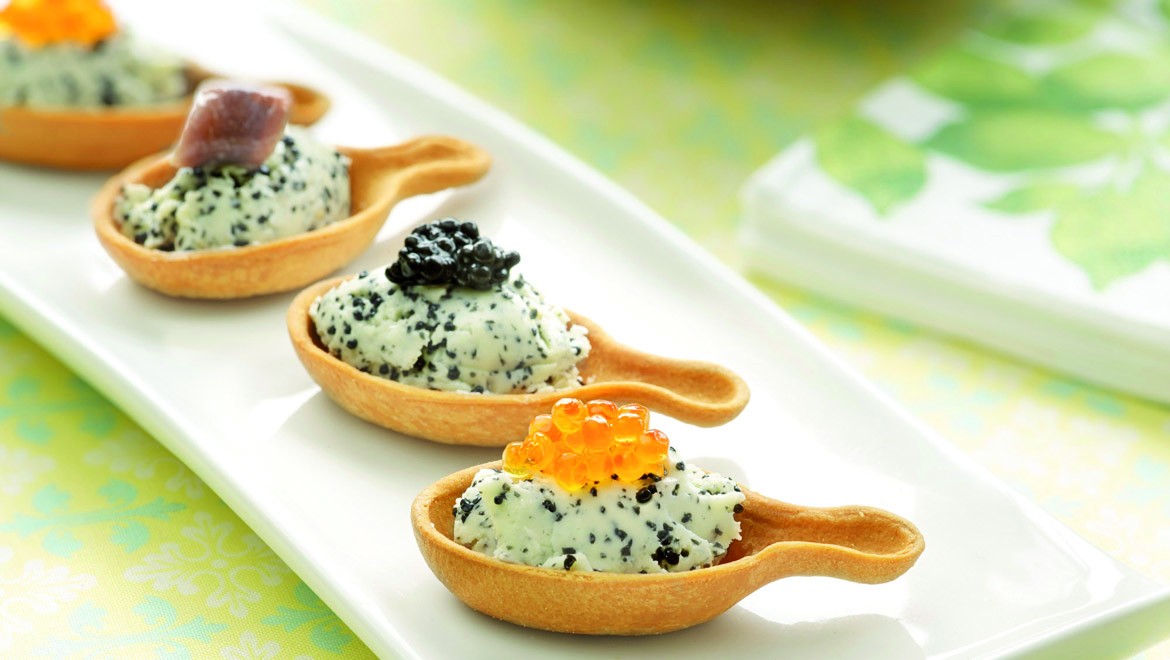 Op toastjes smeren en afwerken met ansjovisfiletjes en viseitjes.